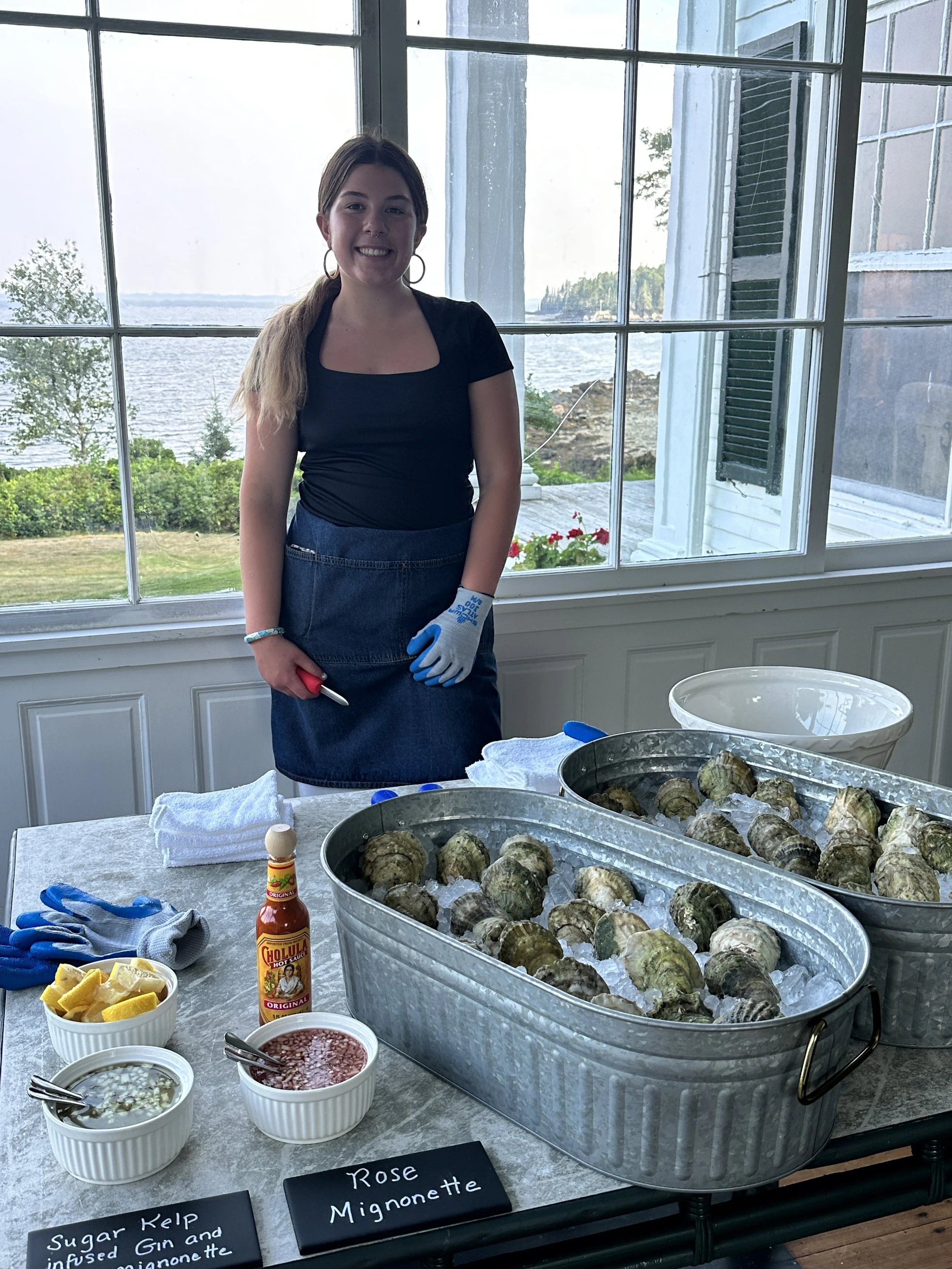 Gaby is the wild child of the crew—the one who brings the fun, the humor, and the “let’s do this” attitude. She was the push her mom needed to dive into oyster farming, and she still leads the charge when it comes to trying new foods, hunting down oyster festivals, or scouting sushi joints with “all you can eat” on the menu. She’s grown up on the bay, started lobstering with a student license in 2021, and now proudly holds her commercial license. On the farm, she keeps things lively as an assistant on our LPAs and has been farming kelp since she was 13.